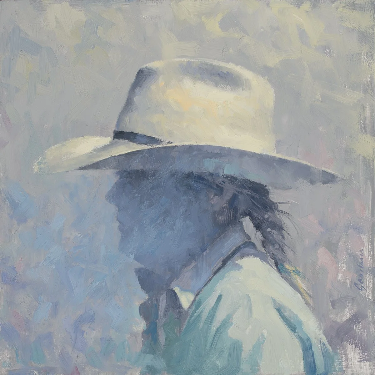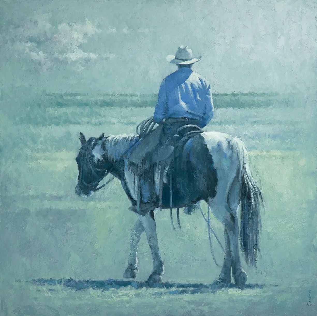 Unknown Cowboy In Blue - 24” x 36”